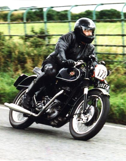 John Preston 's BSA A10 was purchased in 1967 for seven pounds ten shillings. That is photo of him riding in the VMCC closed roads run at the Isle of Mann at Ginger Hall corner in 1996.