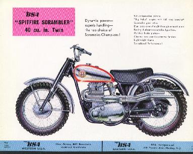 This is an old original BSA color specification for a BSA Spitfire Scrambler. The back of this sheet provided technical data on the scrambler.