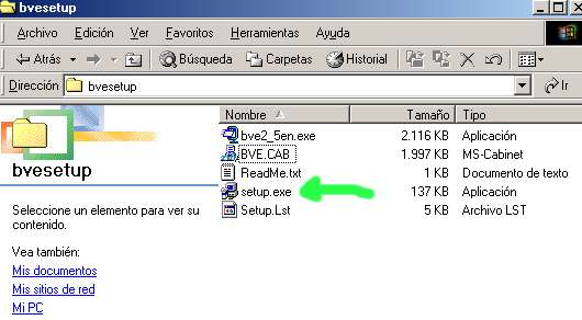 Una vez descomprimido el contenido nuestro directorio c:\ bvesetup deberá contener los siguientes archivos :