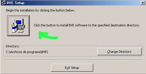 En esta ventana podremos cambiar el directorio donde se va a instalar el programa , aunque es aconsejable dejarlo en el que viene por defecto . Haremos un click ahora en el dibujo , y finalmente comenzará la instalación y copia de archivos del BVE . Una vez copiados los archivos habremos finalizado con exito la instalación del programa . NOTA PARA LOS USUARIOS DEL SISTEMA OPERATIVO XP: Si quieres ejecutar el programa BVE en "FULL screen 640x480" necesitaras desactivar la opción de "temas visuales" para el fichero BVE.exe .Para ello haced un click con el boton derecho encima de "bve.exe" y selecciona propiedades desde el menu . NOTA IMPORTANTE Tened en cuenta que la instalación del programa no incluye ninguna ruta ni tren , por lo que a menos que os bajeis una ruta y su correspondiente tren no podreis jugar . Para probar el juego podreis bajaros la ruta de la linea S1 , de esta misma página y su correspondiente tren la Ut-112 , o si quereis podreis visitar los enlaces de mi página con webs con gran cantidad de rutas y trenes . Si quereis más información de como instalar una ruta haz click aquí.
