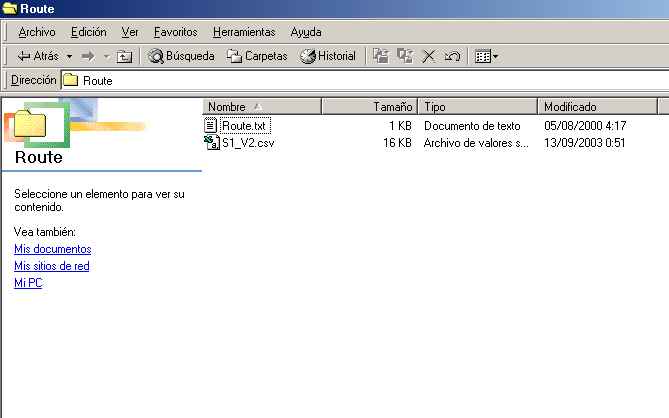 El fichero que aparece con extension CSV , es el fichero de nuestra ruta , mientras que el TXT es la descripción de la ruta . Ahora procederemos de igual forma , para el fichero de sonido , debiendolo descomprimir en la dirección siguiente c:\archivos de progrma\bve\railway\sound