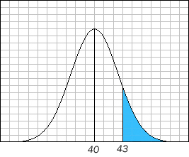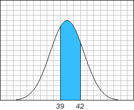 Each curve is distinguished from other normal curves by two features: a mean (m), which tells where the center of the distribution is, and standard deviation (s), which tells how wide the distribution is. The examples below assume a mean of 40 and a standard deviation of 1.