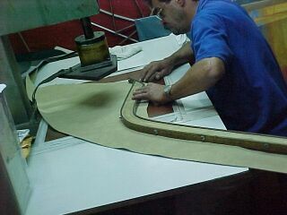 Para os Escort, confeccionamos as capotas no molde original, incluindo os frisos laterais feitos com costura eletrônica. Ao lado essa costura foi feita em tecido impermeável, ideal para capotas no nosso clima tropical devido a resistência ao desbotamento. |