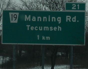 Essex County Highway 19 is a north-south highway in Tecumseh Township. It runs from Essex County Highway 8 north to near Lake St. Clair.