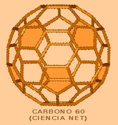 se destaca la molécula gigante, hueca y esférica del carbono 60, que en un icosaedro