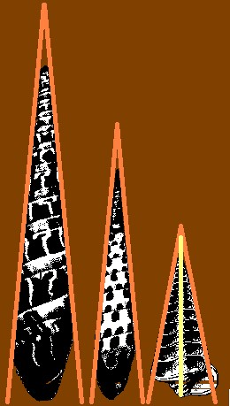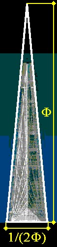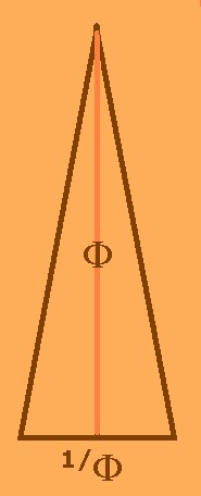 It has of height The ratio between the height of the Triangle and its base is If the base is equaled to 1 the height it is Therefore, one is the Golden Triangle par excellence, paradigmatic geometric figure by his harmonic proportions. |