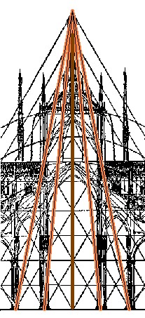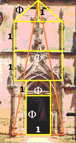 Of that flambloyant gothic work is known like 'treasure' the set of elements in which they stand out, like architectonic jewels, the front, the spiral stairscase and the vault with triangled rib, that are formed with the Golden Number. Between remarkable works of architecture of different times and places with the proportions from the Golden Triangle, the beautiful composition of the front of that castle by his detailed design with the participation of the Golden Number. |