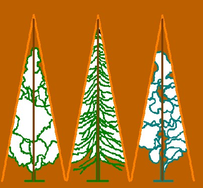 Cypress of Lawson , chamaecyparis lawsoniana Red fir , picea abis Sugi, cryptomeria japonica |