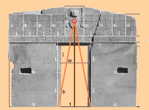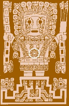 Central figure in the Puerta del Soi de Tiwanaku. Its navel stands out, common vertex of the triangles of composition with the Golden Number. |