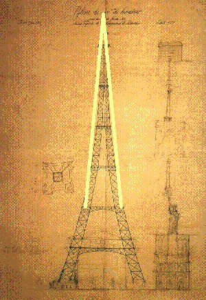 Eiffel tower (s. XIX). S uperposition to drawing of Gustave Eiffel