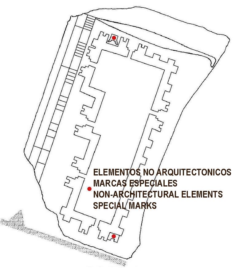 Analysis of the relationship between the ruler and the plan shows that both are found to be displaced, this due to the impossibility of the ruler having a greater longitude than that of the reconstruction –this following a logic of the pattern of configuration-. |