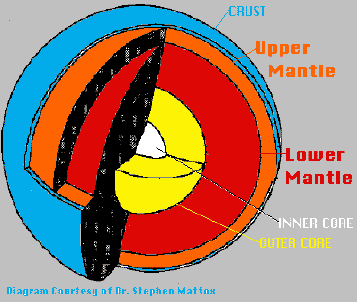flow. The Outer and Inner Cores are hotter still with pressures so great