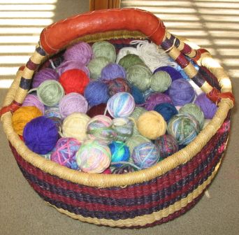 What do you do when your scrap basket is out of control? Make yoyos! Each yoyo takes less than 10 feet of yarn, so even a very small scrap ball will make at least one.