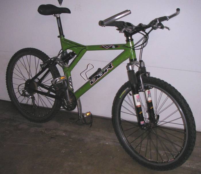 | Being a DBR enthusiast and having ridden a 1998 V-Link 3.2 as my primary ride for 1.5 years, I couldn't pass up a good deal on this V6 on Ebay. While I swapped lots of parts on the V-Link and got its weight down to 27 pounds or less, I kept this one stock except for the fork, which was a 2005 Marzocchi MX Pro ETA 105mm. This is a little over 4 inches of travel and matched the 4.25 inches of rear travel on the V6 better than the original 80mm fork. DBR sold the same frame with 100mm fork (and full XTR!) as the V10 model; so the geometry wasn't changed too much vs. their original intent. I also put on a new WTB Momentum headset while swapping the fork, but that was it - the bike was dirty when I got it, but appeared to have had fairly little use. The stock Stratos Helix Expert (air/coil) shock had a leak when I got this bike; so I first swapped on the Stratos Sport coil only shock from my V-Link and later changed it out for a correct Helix Expert I found on Ebay. Overall, this bike felt more plush than my V-Link, which was probably due mostly to the fork difference, as the V-Link runs a Marathon S (double air) 85mm fork and essentially the same shock, but with lockout (Helix Pro). This bike was very fun to ride, but I built a new full suspension rig and decided I had to make garage space for other projects. Hopefully, it's being ridden and enjoyed now... More photos: New - "After" Photo 2, "After" Photo 3 Dirty drivetrain when I got the bike Handlebar View WTB Momentum front hub (stock) 1998 DBR Brochure Pages for the V6: Page 1, Page 2 1998 DBR Brochure Specs Page Navigation: To my DBR site To my Vintage MTB site All content copyright 2006-2007 Cegrover |