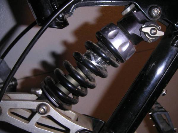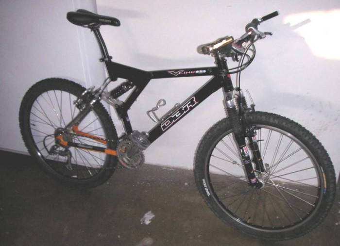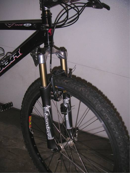 | I reluctantly sold my V-Link on May 12, 2008 to make garage room for other projects. Hopefully, though, it'll be ridden and enjoyed! My (former) 1998 DBR (Diamondback Racing) V-Link 3.2 - 28 pounds on bathroom scale with Marzocchi Marathon SL (2002 double air) fork. Was 27 pounds with original Judy T2 fork, but the fork and added adjustability are more than worth the extra pound! Specs: SRAM 9.0 ESP rear derailleur - bought NOS Fall 2004 SRAM 9.0 ESP shorty twist shifters (8-speed) - bought NOS Fall 2004 SRAM PG-850 cassette (11-32) Shimano STX-RC front derailleur (stock) Shimano STX-RC crankset and chianrings (stock) Crank Brothers Mallet C clipless platform pedals or Wellgo B-37 platforms (platforms most often lately) Shimano IG-90 chain Stratos Helix Pro rear shock (came with my used V-10 frame) Thomson Elite set back seatpost Shimano XTR V-Brakes (came with V-10) with YPK brake pads Avid brake cables/housings YPK shift cables/housings SRAM 9.0 brake levers (new Aug. 2005) ODI/Yeti lock-on grips (new Aug 2005) Mavic X517 black rims with Shimano XT silver hubs and XT quick releases (came with V-10) Club Roost Go Fast red riser bar (came with V-Link, but not stock) Kalloy (?) generic polished stem (stock) Aheadset headset (stock) Selle Stratos Generation 2000 saddle (taken from my wife's hardtail) Sette carbon bar ends - R.I.P. broke one in a fall at Big Bear and now they're gone IRC Trail Bear 2.25" front tire IRC Mythos XC 2.1" rear tire Supergo wireless cyclometer Shimano XT bottom bracket (UN73) installed 12-03-05 (no photo, of course) Marzocchi Marathon S Fork (85mm) Notes: - My bike has a V-10 chainstay. That's why it's orange. - Here's a photo of my V-10 when it was new and complete (courtesy of previous owner) - Here's my V-Link with the bar ends, stock Rock Shox Judy T2 fork and stock brake levers Links: Click for original V-Link 3.2 specs (Epinions) Another site with specs (Airfreetires) MTBR reviews of the V-Link 3.2 More V-Link reviews Back to my DBR Page |