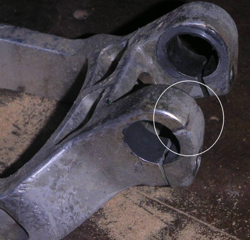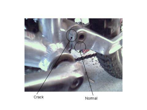 | My own personal experience, as well as internet research, has proven that V-Link rear triangles have a tendancy to crack. I have seen cracks in two places: The pivot point near the bottom bracket (very common problem) Here's another photo of this issue (not my bike) The pivot point where the seatstay attaches to the chainstay (have only seen this once - my V10 frame!) Cause: I believe both problems are caused by overtightening of the bolts in those locations. The Diamondback XSL frame, which closely resembles the V-bike frames, does not have the bolts at the bottom bracket pivot point. I have not closely examined the XSL, but I assume this bushing is held in place with screws on the frame, just like the V-bike frame, but without the additional (unnecessary?) screws on the chainstay. More to come. Bottom line is there's clearly a design issue here with regard to the chainstay, but I suspect it only manifests itself as a failure because torque specs are no longer readily available. Based on a phone call to customer service, DB currently does not have this info. Perhaps someone working at a bike shop might have old service info? How did I find out these problems were common and how common are they? I originally became aware of the cracking problem through a fellow enthusiast's site (click for link). After that, I checked and found the crack on my V-Link 3.2 frame around November 2004. I don't think it was there when I bought my bike used. If it was, then I rode it a lot that way before I noticed the crack. Once I found the crack, I started shopping for a replacement frame or swingarm. Knowing the problem seemed to be common, I checked with Ebay sellers and had them inspect their frames and send me photos of the swingarm pivot. I've since had several Ebay sellers either tell me they found cracks or send me photos that showed cracks. I estimate about half the frames I've asked about have had cracks (probably about 6 out of 12). If I recall correctly, this includes 5 chainstay cracks and 1 seatstay crack. Since I set up my DBR site, I have also received several messages from fellow owners who have had frames crack. I estimate another ten have sent me info on their cracks, with about 7 being chainstay problems and the rest seatstays. One managed to have bracing welded on and reported success based on a couple weeks riding that way. I don't have details on how this was done. What bikes are affected by these issues? I've only seen these problems on 1997 and 1998 V-Links and V-Bikes (V6, V8, V10). I'm not aware of any frame problems on the carbon bikes (1997 V-Link Pro and 1998 V6 Team); but I suspect they use the same rear triangle, so lack of reported issues may reflect production volume rather than likelihood of occurance. I have never heard of issues on 1996 V-Links (first year of the frame) nor on later X-bikes or XSLs. From what I can tell from photos, the 1996 V-Link had a different chainstay pivot arrangement. Perhaps it is not so prone to cracking? How do the cracks affect riding? I rode my bike regularly with the chainstay crack with no problems for about 5 months, including on technical terrain (Rock-It at Aliso-Wood, Chutes at Santiago Oaks, etc. for those who know SOCAL); but I did check on it frequently. In retrospect, riding it that way was proabably risky, but it never did crack the opposite side from additional stress or anything like that and never did anything to cause a wreck (only noise). What did I do about the problem? I eventually got lucky and found a V10 frame for sale - with lots of nice parts - locally on Craigslist. I held off on replacing the chainstay for awhile until I heard a really bad creaking. When I took apart the V10 rear triangle to put it on my V-Link, I found the seatstay crack. So...I used the V-Link seatstay and the V10 chainstay. My bike's been this way since May 2005 and I've had no troubles. NOTE THAT I NEVER RODE ON THE SEATSTAY CRACK, so I can't comment on that. I also later bought a used V6 and never had problems with it. Maybe its bolts were never overtightened?? Repairs: I have heard from many sources that you cannot reliably weld aluminum bike frames. As mentioned before, I have received one email indicating this has been done, but I don't have details. Replacement: A Diamondback customer service representative told me on the phone that they have no data, decals or parts for any frames made before Derby (Raliegh) purchased Diamondback. Note: In no way do I mean for this page to be anti-Diamondback, anti-Derby or anti-V-Link. I personally think these bikes represent a great ride and amazing value. I just want people to know what to look for when they're in the market so that there will be more happy V-Link riders/customers. To my DBR site Email me! |