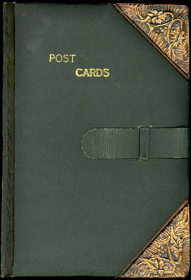 tarjetas postales con tapas imitación cuero verde, con título en