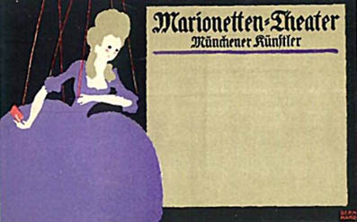 Diseñador Bernhard. Publicitaria del Teatro de la Marioneta de Munich.