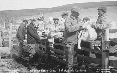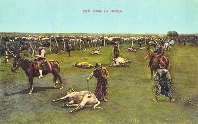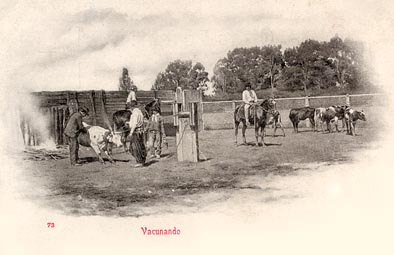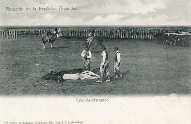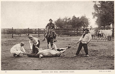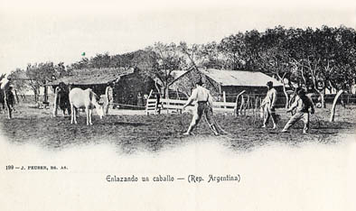 en un corral de estancia (yerra). Editor: R. Rosauer, ca.1904 |