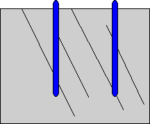 Alta inclinação (mergulho) - Os poços interceptam poucas fraturas
