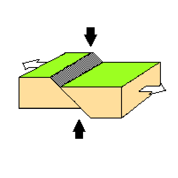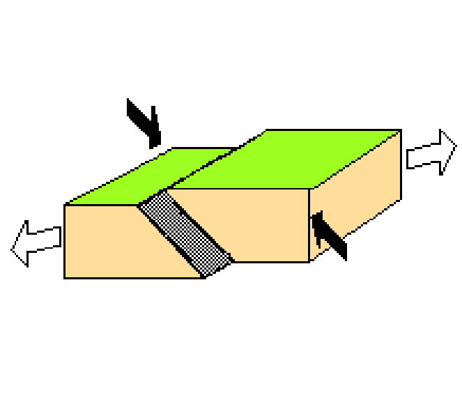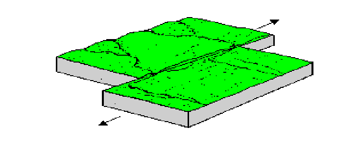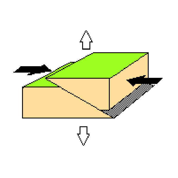 (Falha transcorrente - um bloco desliza lateralmente em relação ao outro)