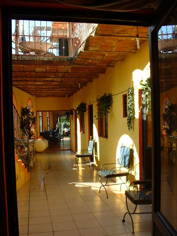 | Here is the interior view of the sweet little local Posada Sarahi, it is the view from my room where I stayed. The proprietor is a friendly local mexican woman, Ophelia, who runs a nice little place with her daughters. Its a little rough around the edges but it has a heart of gold. The exterior of the building is in need of a little paint, but the interior is where it counts, and inside she has freshly painted, and she keeps the place clean. She has 4 rooms now with more being built upstairs, her rooms have a variety of number of beds, and are very affordable.