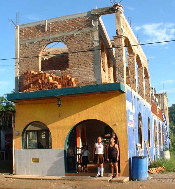 | Posada Sarahi, Chacala. In this pic Ophelia & Ophelia-chica are out in front of their posada,- it is only about 70 meters from the beach its not ocean front, but its centrally located on the main beach road. Its a quiet place on a quiet small beach road.