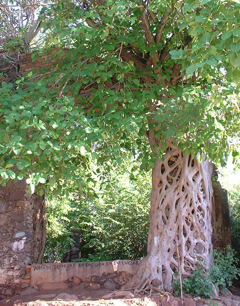 | A Ficus Benjamina tree is taking over the column of an abandoned building near the marina in Chacala. There is a nice path, to take along the edge of the bay in both directions. The town is nice to walk around.