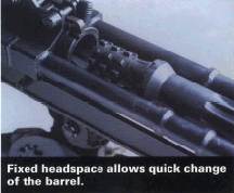 | This heavy MG was designed by ST kinetics of Singapore to replace the old M2HB in service with SAF. The CIS.50 features quick changeable barrel with fixed headspace, dual feed system (left or right, selectable) for quick change of type of ammunition fired, semi-auto and full auto modes of fire. |