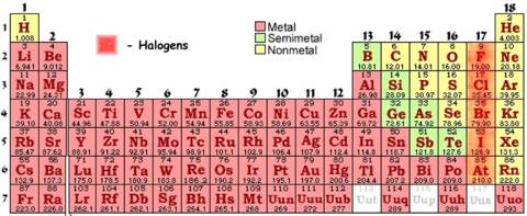 halogens are elements with 7 electrons in it�s outer shell, they take up column 17 on this periodic table: