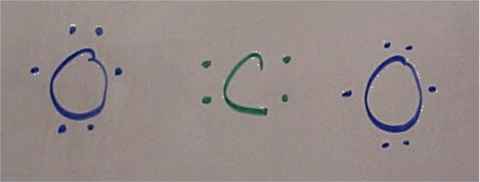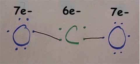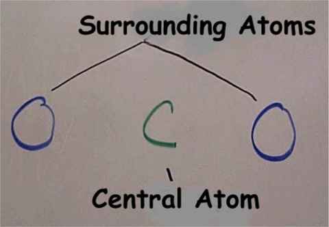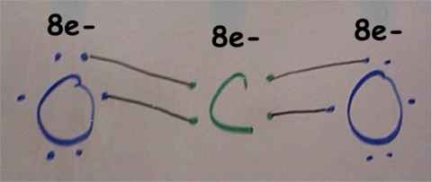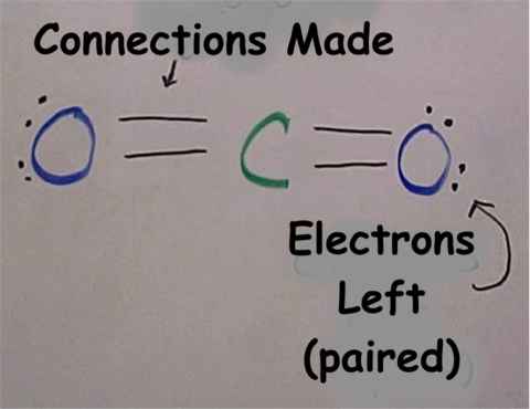 Now back to using CO2 as an example. Draw lines from one of the electrons of the central atom to the electrons on the other atoms.