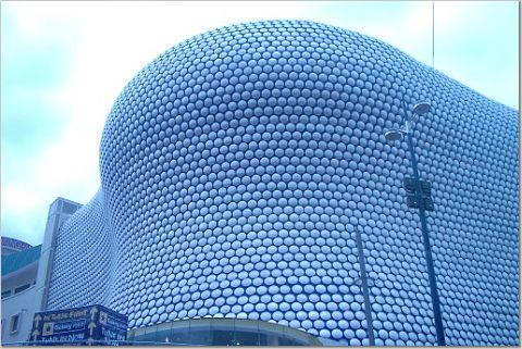 | Selfridges, Birmingham is covered in thousands of alluminium plates. The distinctive design is part of the Bullring development. |