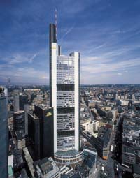 | The Commerzbank tower is the world's first eco-friendly skyscraper, due to its innovative heating system. It currently has Europe's highest inhabitated floor, after it took the prestigious title in 1997 from the Messeturm, also in Frankfurt. |