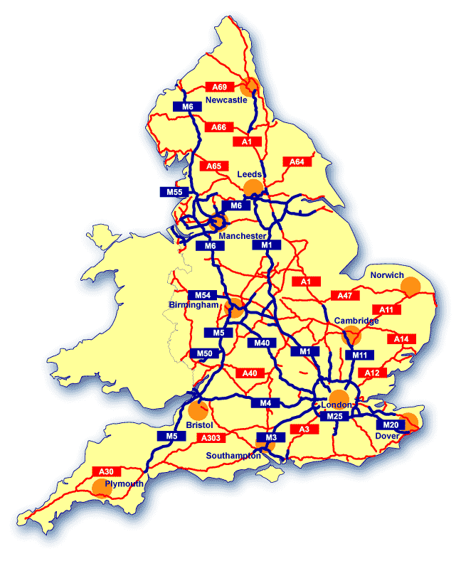 | Map of the English motorway and trunk road network |