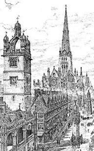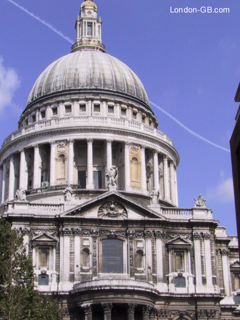 | The great dome of Saint Paul's cathedral is one of London's greatest landmarks. There have been several cathedrals on this site, but the prsent one was completed in 1710, at the completion of the two baroque towers on the west front. The architect, Sir Christopher Wren, was old by the time it was complete. The dome reaches to a height of 112 metres, and is the 3rd largest dome in the word, after the Yamoussoukro dome in The Ivory coast, and Saint Peter's in Rome. Old Saint Paul's (destroyed in the great fire - 1666) was for some time the world's tallest structure, with a massive 161 metre tall tower/spire, larger even than the 19th century gothic revival buildings in Germany. |