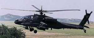 El Apache es un helicóptero biturbina de ataque, desarrollado y construido por McDonnell Douglas (ahora Boeing) en servicio con el US Army y exportado a Egipto, Grecia, Israel, Holanda, Arabia y Reino Unido. El US Army adoptó por primera vez al Apache en 1984. Todos los AH- 64A Apaches están siendo mejorados al AH-64D con turbinas mas potentes y se espera finalizar el trabajo para el 2010. El AH-64D Longbow está adaptado con el sistema control de radar milimétrico de fuego Longbowy misiles Longbow Hellfire. El US Army tiene mas de 800 Apaches en servicio y mas de 1000 han sido exportados. El Apache fue el primero en ser usado en combate en diciembre de 1989 en la acción militar en Panamá. Fue usado en la Guerra del Golfo en el cual 15 batallones estaban equipados con 288 helicópteros. El Longbow Apache, AH-64D, está equipado con el radar milimétrico de fuego de Westinghouse y el misil AGM-114D Longbow Hellfire de Lockheed Martin y Boeing. El Longbow puede llevar una combinación de armamento que puede ser elegida de acuerdo a la misión. En el rol de soporte cercano lleva 16 misiles aire-superficie y cuatro lanzadores de misiles aire-aire. |