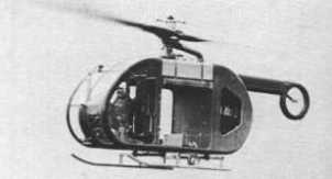 General purpose experimental helicopter using the cold-jet propulsion system. The compressed air ejected by the blade-tip nozzles was provided by a 530hp Fiat 4700 turbogenerator. |