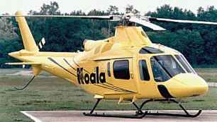 The A119 Koala was unveiled at the Paris Air Show in June 1995 after its first flight earlier in the year. A second machine followed later in 1995. Both first flew with 800 shp Turboméca Arriel engines, but these were replaced by the definitive PT6B later.Certification was anticipated in 1997, and production is expected to reach 20 per year. The helicopter is based on the airframe of the twin-engined Agusta 109 family, but emphasis is put on low costs. Wheel gear is replaced by skids. The A119 Koala is a light, single engine helicopter, 8 seats, for passenger transport and aerial work. The wide cabin, the largest of its class, with no internal obstruction allows the highest operational flexibility. |
