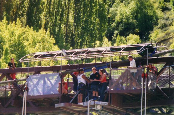 Does it sound like I was actually getting bored with bungee jumping? In some ways, I guess I was. The next day we went to a place called Nevis River for the third jump. If I was getting complacent, this totally changed my mind. At Nevis, the jumping platform is actually a cable car suspended 154m (or something like that) above the river. To get to it, you need to ride on a little gondola, and believe me, I was far more scared of that thing than of jumping! Being on the jump platform was scary enough (it was windy and the thing is moving around while you're standing there watching everyone!) but the jump was fantastic. As opposed to the other big one I did in SA, for this one I was pretty confident and not really as nervous, so I remember a lot more of it and enjoyed it so much more. It was definitely the best one I've done.