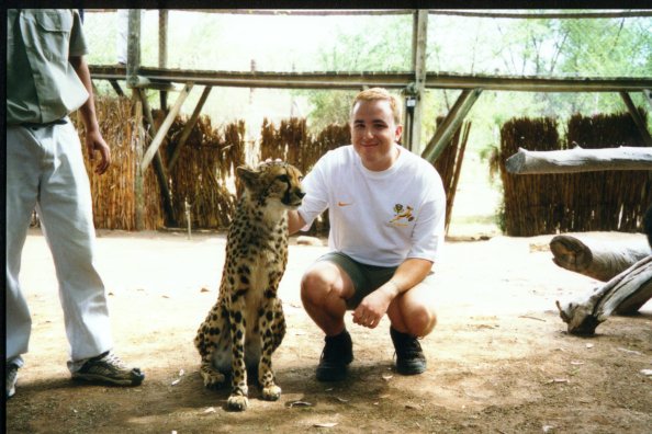 We finally did see a leopard, but only very shortly (it ran away before I could get a good picture of it). We didn't see any cheetahs, but I did get to PET one at a zoo before the trip. I also sat on an ostrich. Long story. Yes, there are photos.