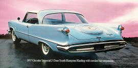 Imperial introduce en la industria Americana el primer parabrisas con doble curvatura (lateral y superior) y ventanillas laterales curvas. El imperial se identifica con las primeras aletas bien definidas.
