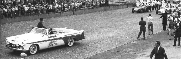 The Driver: DeSoto president L. Irving Woolson led the field on the fastest pace lap that day and pulled off the track at over 100 mph, while a camera recorded the start trough a hole cut in the Pacesetter’s trunk lid.