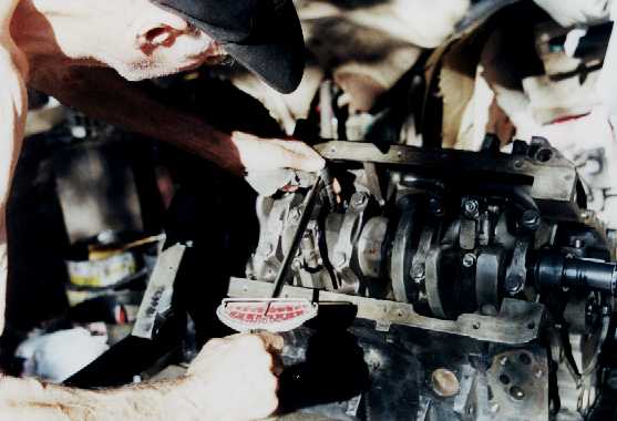 Su trabajo comenzó, inspeccionando las piezas y dijo que todo estaba bien. Ajusto primeramente las bancadas lijando las tapas y cojinetes con una paciencia que es digna de destacar (1 semana). Luego con el mismo empeño ajusto biela por biela (otras 2 semanas). Por último midió los aros y colocó los pistones en su lugar (2 semans más).