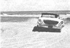 Stylewise, the Newport is Chrysler all the way and unless you are a real Chrysler phobe you’d be hard pressed to tell which model it is. It’s only four inches shorter than the New Yorker overall and just as wide and roomy inside. This car will appeal to a lot of buyers who want that certain amount of prestige that goes with owning a Chrysler, plus very good performance over the ground, and all on the regular fuel. The Newport isn’t the fastest car on the road in its standard suit but it’s also a long way from being the slowest, and it certainly won’t cause you any embarrassment at a traffic light. With the standard engine and regular gas the Newport will crank out zero to 60 mph in ten seconds flat—and, as you know, that’s still pretty good. Top speed is better than 110 mph and on the road it will whip up from 40 to 60 in 5.1 seconds which will get you by the oxcarts pretty fast. All performance speed tests were made at the Daytona Speedway and for spins and handling control I used the sports car course and the beach.