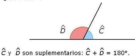 Dos ángulos son suplementarios si su suma es igual a 180°: