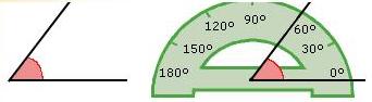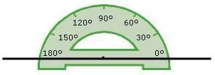 1. Se coloca el transportador de forma que coincida el punto de su base, su centro, con el vértice del ángulo, y que uno de los lados del ángulo pase por 0°, es decir, por la base del transportador.