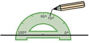 Si en vez de medir queremos dibujar un ángulo, se procede al revés. Por ejemplo, para dibujar un ángulo de 70º se siguen estos pasos: