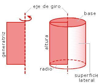 Las columnas de un templo clásico, un rodillo de amasar o el rulo de una apisonadora son también ejemplos de cilindros. El cilindro se forma al girar un rectángulo alrededor de uno de sus lados, que se mantiene fijo, como en una puerta giratoria. Los elementos del cilindro son: