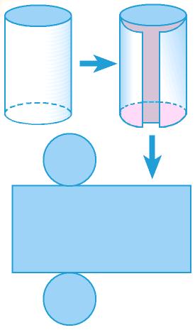 Si cortamos el cilindro por su superficie lateral, en vertical, y por los bordes de sus bases, y lo extendemos sobre una superficie plana, obtenemos su desarrollo: