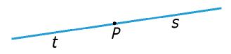 Si marcamos un punto P sobre una recta r, ésta queda dividida en dos partes o semirrectas, que llamamos, por ejemplo, s y t. Una semirrecta sí tiene principio, pero no tiene fin. Al punto P se le llama origen de ambas semirrectas.